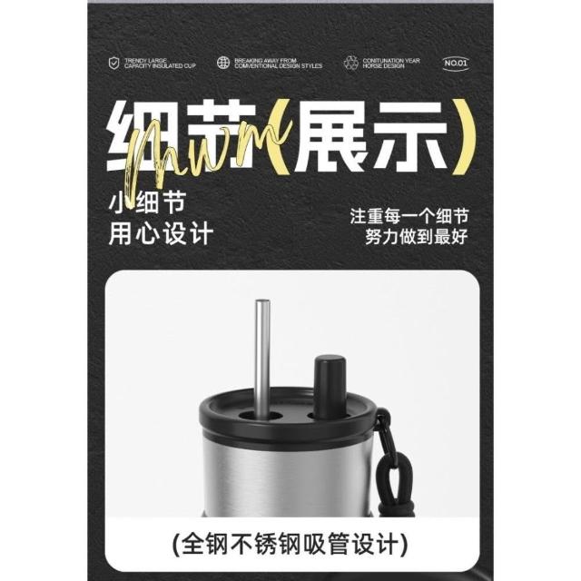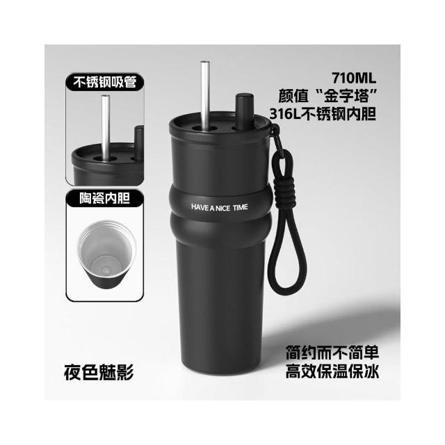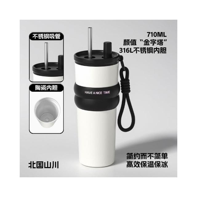 710ml大容量陶瓷內膽316不鏽鋼內膽保溫杯 不鏽鋼保溫大象杯 帶提繩不鏽鋼吸管奶茶杯 保溫防漏環保咖啡杯