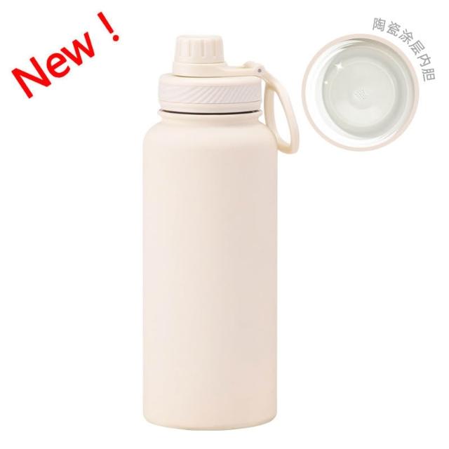 1L陶瓷塗層內膽/不鏽鋼內膽運動保溫杯 大口徑手提陶瓷環保杯 車載保溫杯 戶外運動不鏽鋼水壺 大容量隨行杯 健身隨