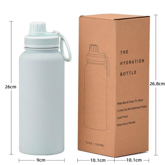 1L陶瓷塗層內膽/不鏽鋼內膽運動保溫杯 大口徑手提陶瓷環保杯 車載保溫杯 戶外運動不鏽鋼水壺 大容量隨行杯 健身隨