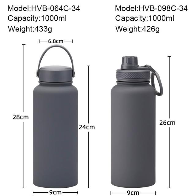 1L陶瓷塗層內膽/不鏽鋼內膽運動保溫杯 大口徑手提陶瓷環保杯 車載保溫杯 戶外運動不鏽鋼水壺 大容量隨行杯 健身隨