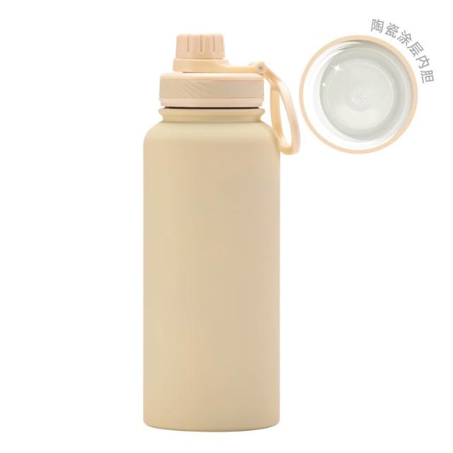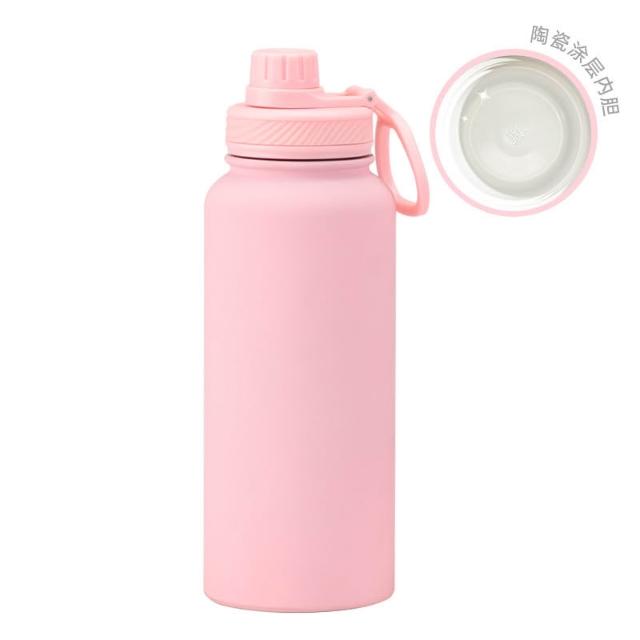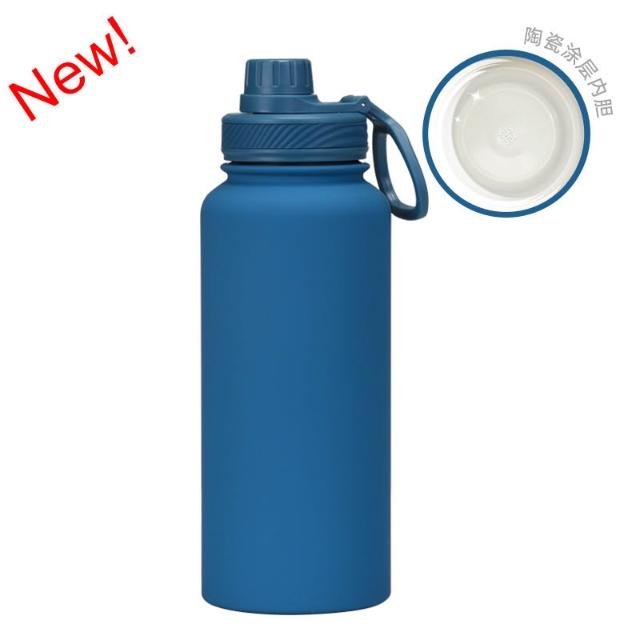 1L陶瓷塗層內膽/不鏽鋼內膽運動保溫杯 大口徑手提陶瓷環保杯 車載保溫杯 戶外運動不鏽鋼水壺 大容量隨行杯 健身隨