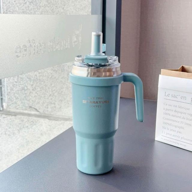 SITARAYURI大容量雙飲手柄保溫杯 304不鏽鋼780ml冰霸杯 雙飲式旋轉杯蓋防漏保溫大象杯 便攜式吸管咖啡杯