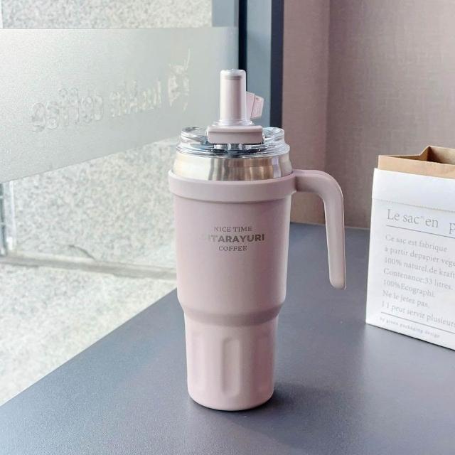 SITARAYURI大容量雙飲手柄保溫杯 304不鏽鋼780ml冰霸杯 雙飲式旋轉杯蓋防漏保溫大象杯 便攜式吸管咖啡杯