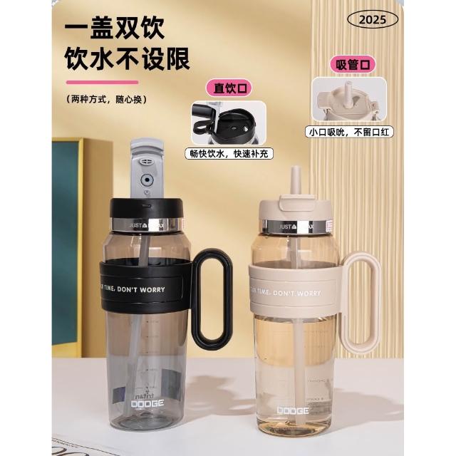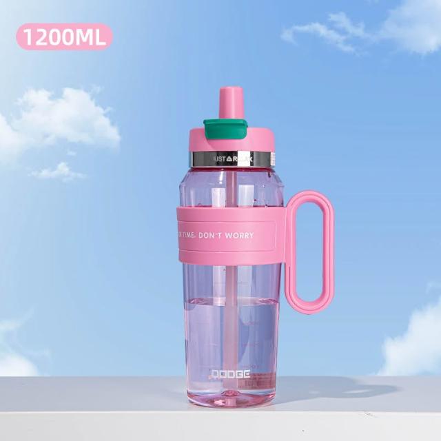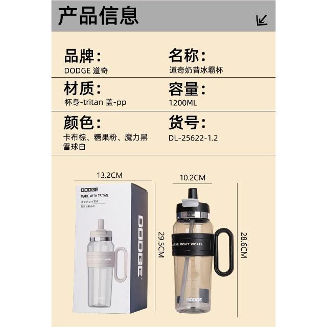 Dodge 道奇道奇奶昔冰霸杯 1200ml大容量TRITAN運動水壺 附矽膠吸管TRITAN大象杯 附側握手把隨行杯 TRITAN耐溫運動水壺 手柄旋轉杯蓋防漏吸管水杯 手柄奶茶杯