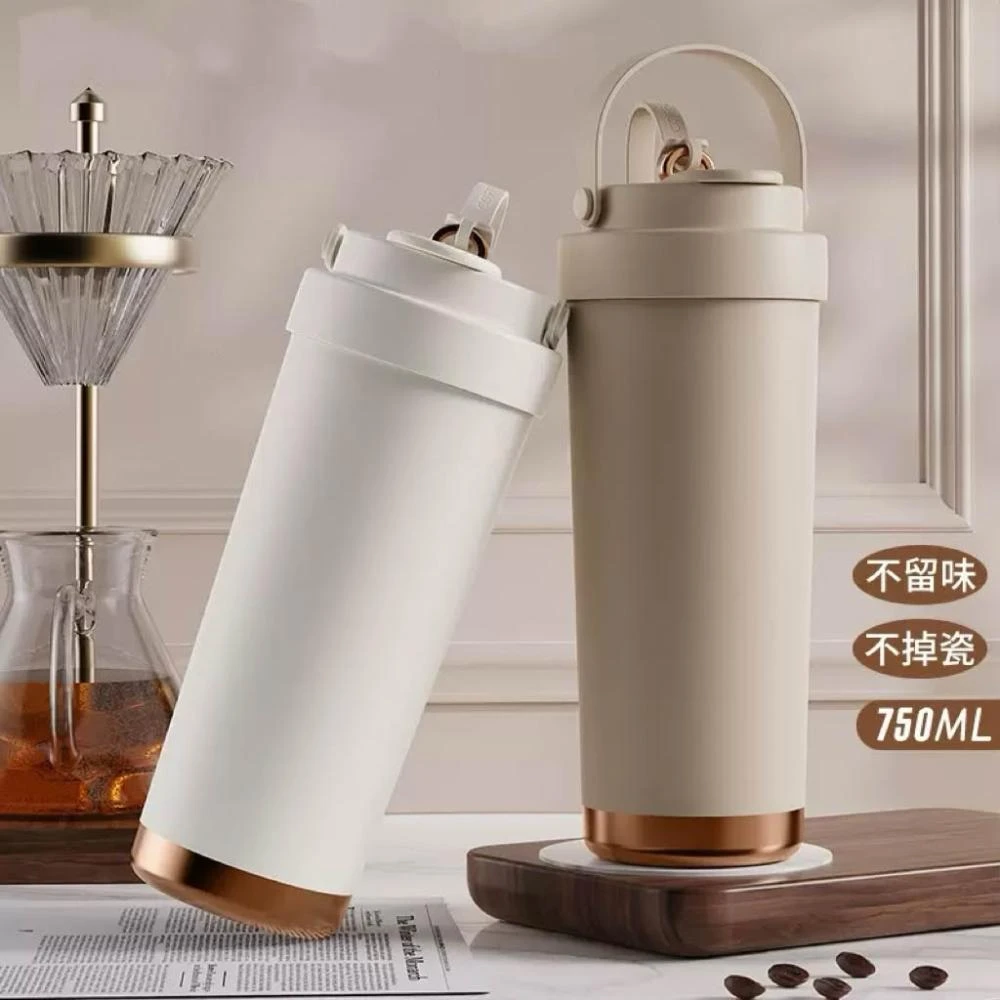 買一送一 750ml陶瓷塗層內膽一杯三飲保溫杯/手把冰霸杯 贈組合式吸管 夏季最頂新品 304不鏽鋼保溫杯
