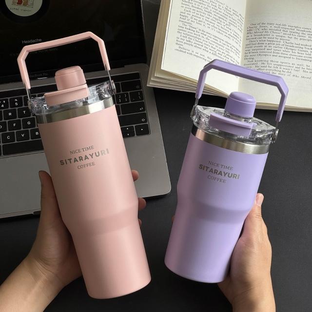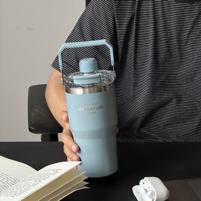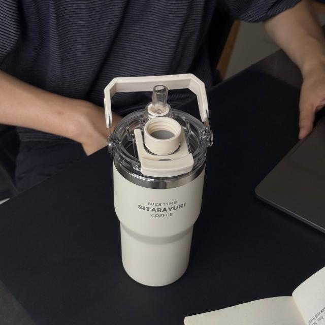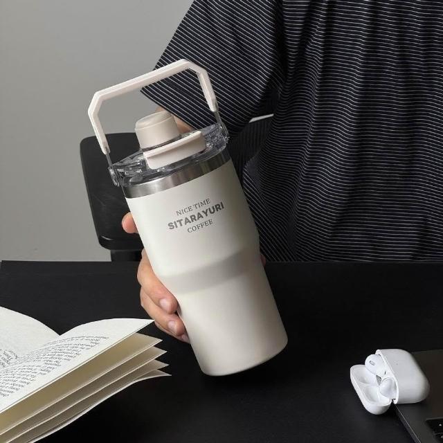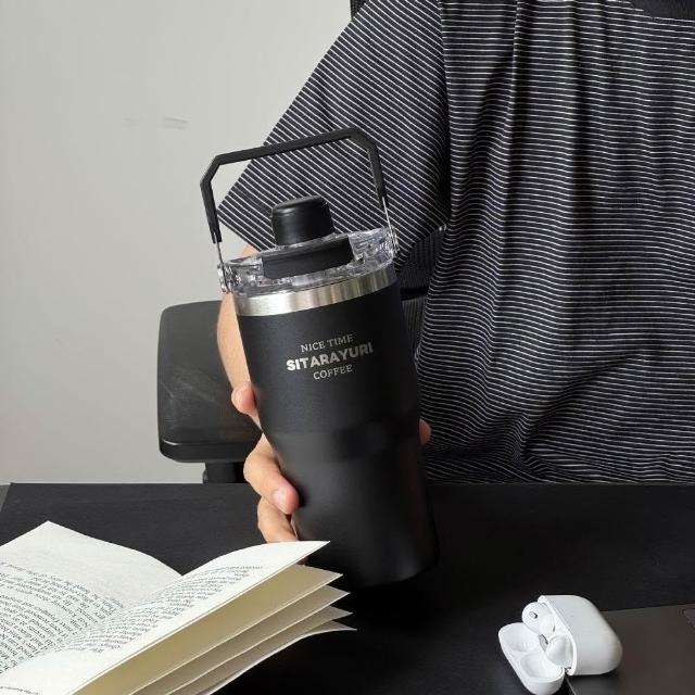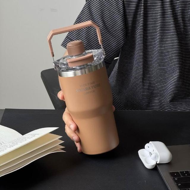 SITARAYURI三飲磁吸保溫杯600m/900ml304不鏽鋼冰霸杯 三飲防塵蓋吸管大象杯 手提冰霸杯 環保咖啡杯