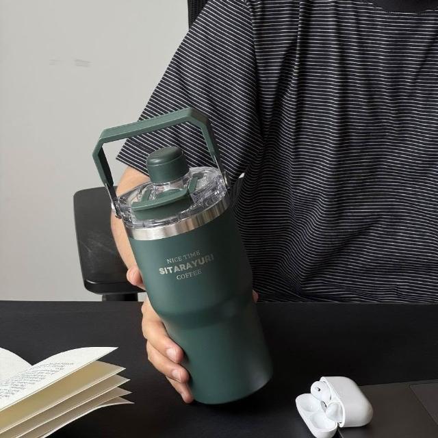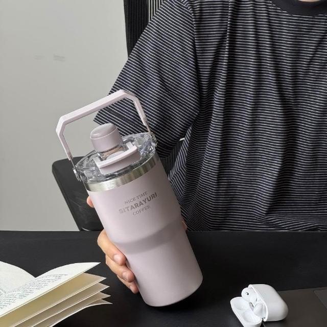 SITARAYURI三飲磁吸保溫杯600m/900ml304不鏽鋼冰霸杯 三飲防塵蓋吸管大象杯 手提冰霸杯 環保咖啡杯