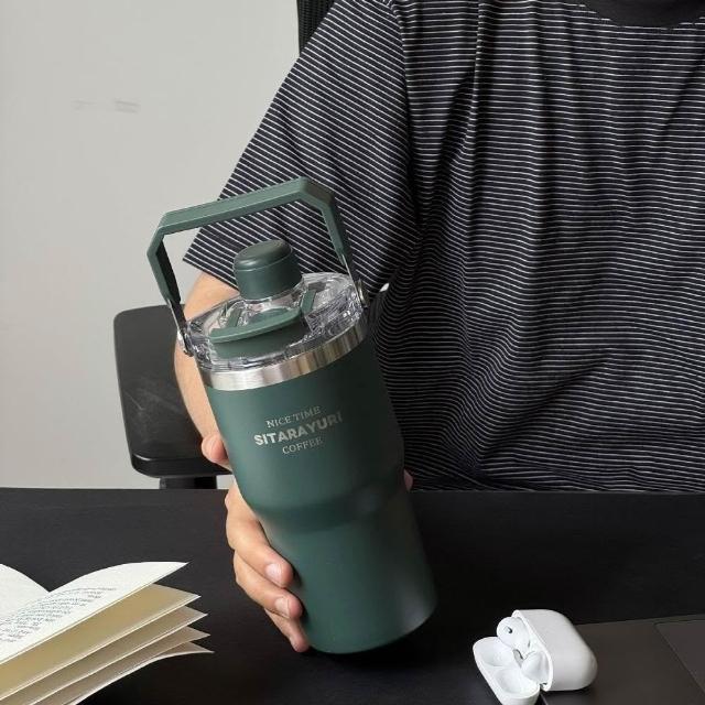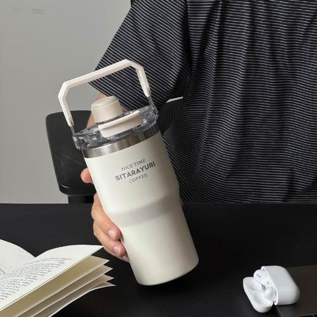 SITARAYURI三飲磁吸保溫杯600m/900ml304不鏽鋼冰霸杯 三飲防塵蓋吸管大象杯 手提冰霸杯 環保咖啡杯
