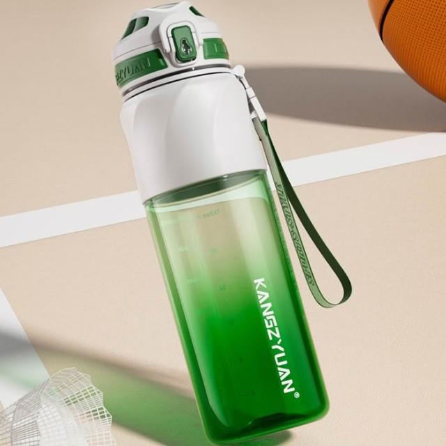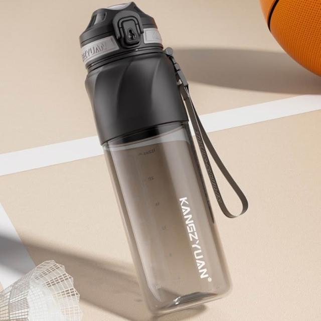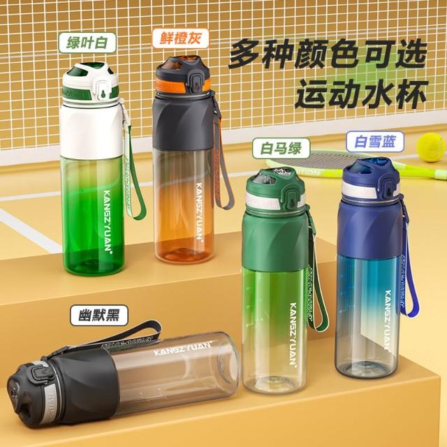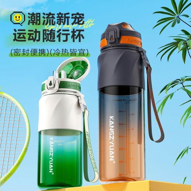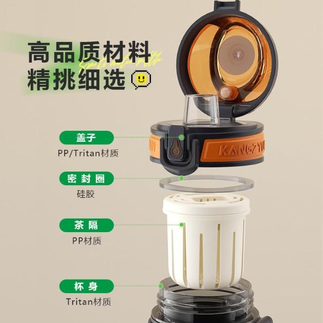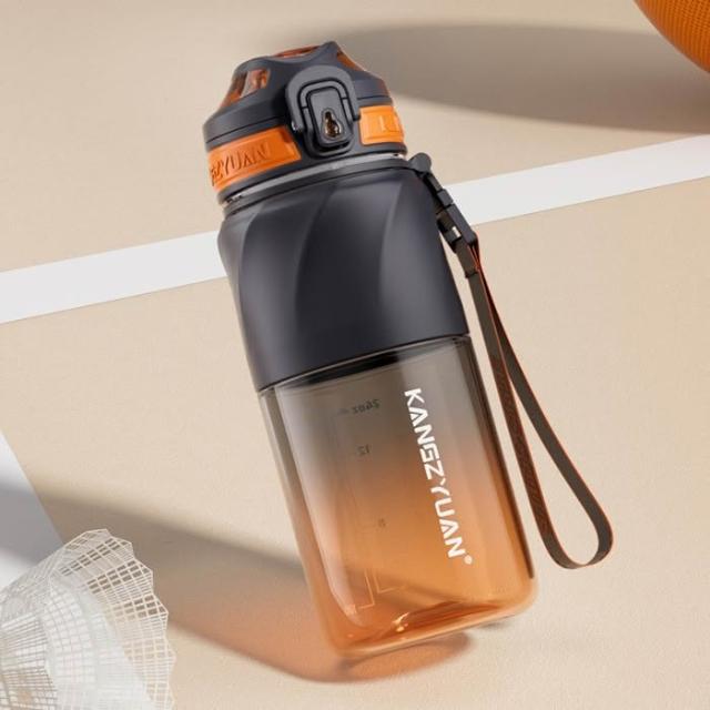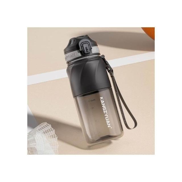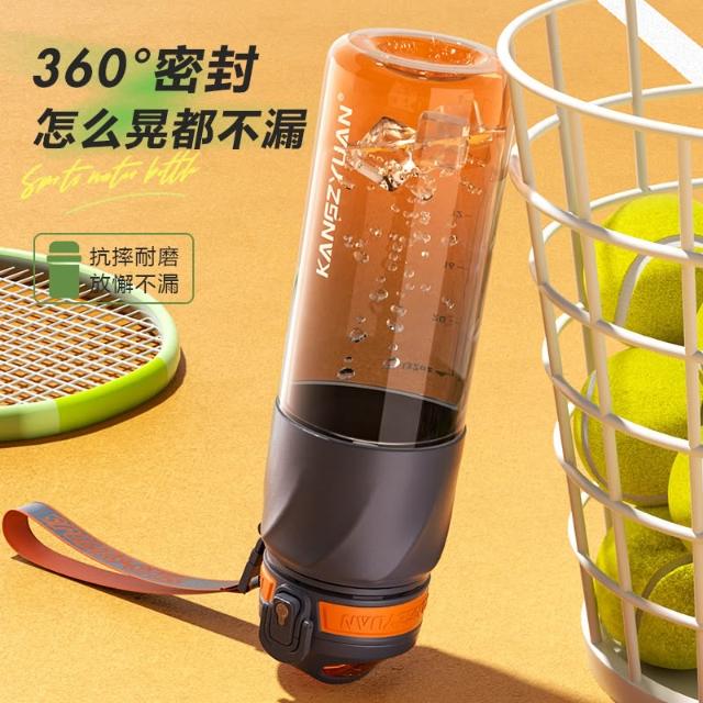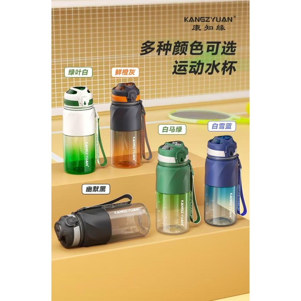 KANGZYUAN星馳運動水杯 隨行杯活動茶隔 一鍵彈蓋安全鎖防漏健身水杯 矽膠套防滑防燙運動水壺 提繩便攜水壺