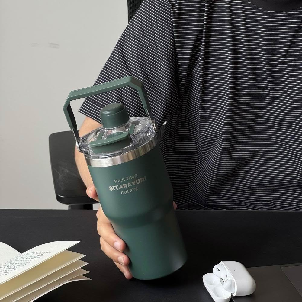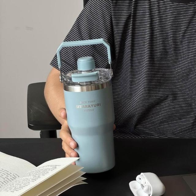 買一送一 900ML大容量提把大象杯/冰霸杯/保溫杯 磁吸防塵吸管蓋 SITARAYURI三飲式304不鏽鋼冰壩杯
