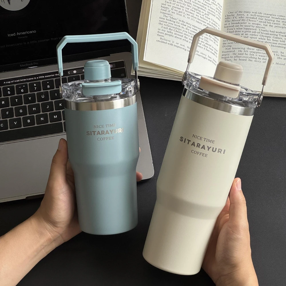 買一送一 900ML大容量提把大象杯/冰霸杯/保溫杯 磁吸防塵吸管蓋 SITARAYURI三飲式304不鏽鋼冰壩杯