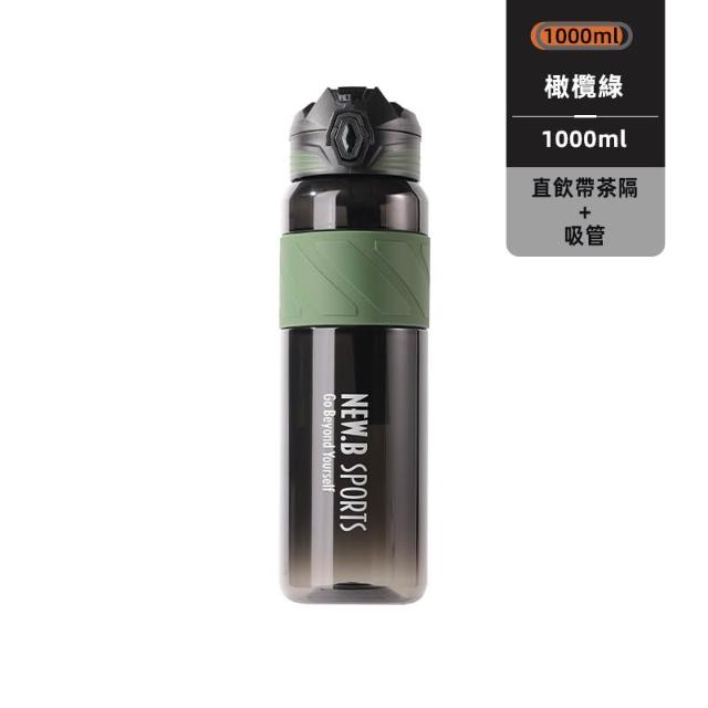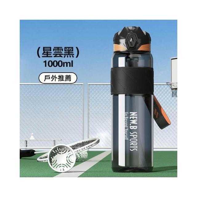 買一送一 NEW.B星耀TRITAN運動水壺 1000ml一鍵彈蓋吸管隨行杯 附提繩矽膠杯套防滑防燙運動車載水壺