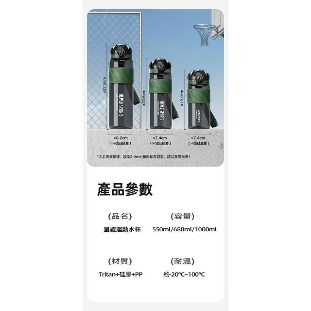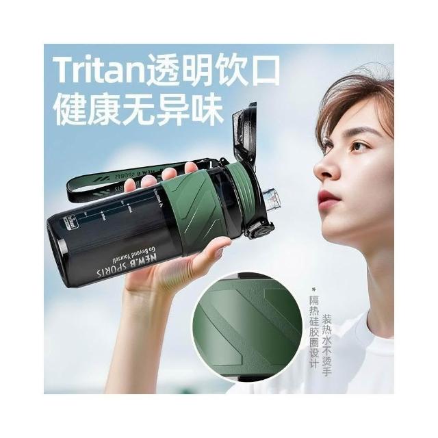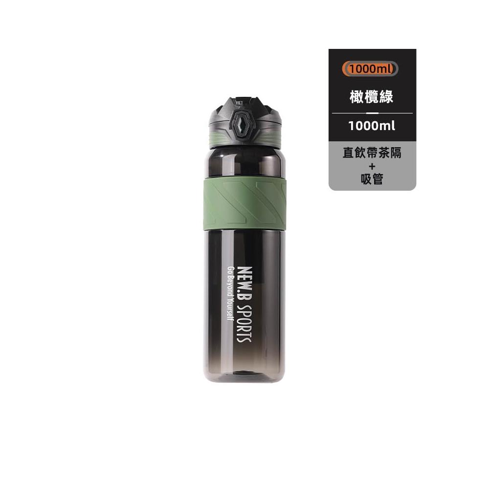 買一送一 NEW.B星耀TRITAN運動水壺 1000ml一鍵彈蓋吸管隨行杯 附提繩矽膠杯套防滑防燙運動車載水壺