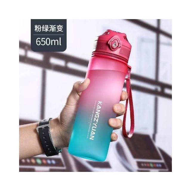 買一送一 KANGZYUAN康知緣幻影漸變TRITAN運動水壺650ml 耐溫磨砂質感 附提繩 安全扣防漏彈蓋式運動水壺