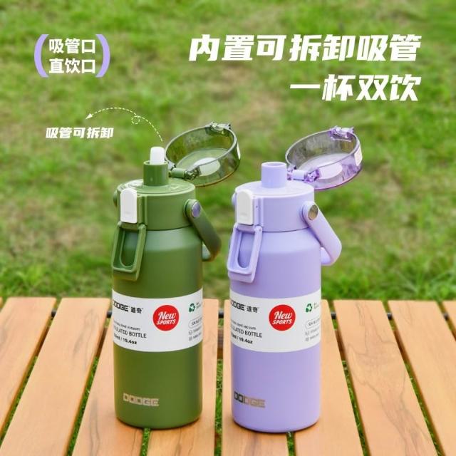 買一送一 道奇隨動保溫杯700ml 304不鏽鋼運動保溫杯 戶外運動便攜手提吸管保溫杯 大容量一鍵彈蓋運動健身車載杯