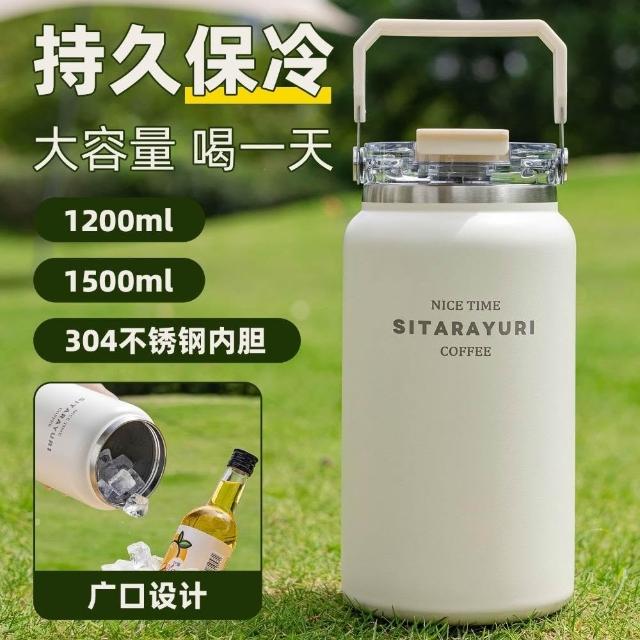 買一送一SITARAYURI 大容量保溫冰桶1500ml便攜隨行高顏值304不鏽鋼杯 便攜 辦公休閑大容量戶外運動保溫杯