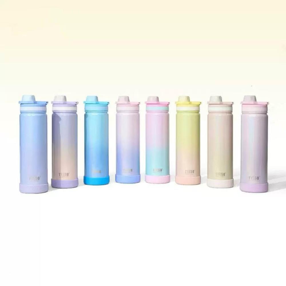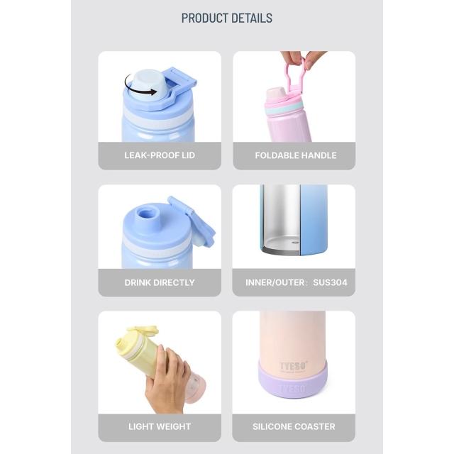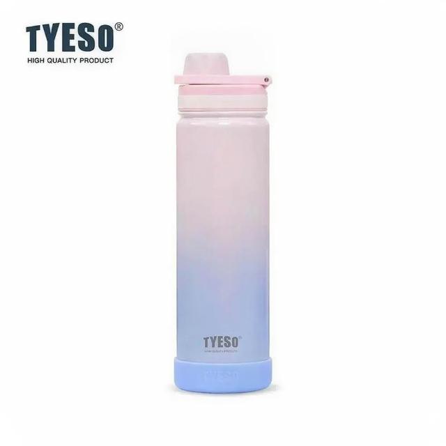 TYESO霓虹色彩保溫杯 304不鏽鋼600ml/750ml/運動水壺 環保隨行杯 車載咖啡杯 防漏杯蓋附提手矽膠杯墊杯