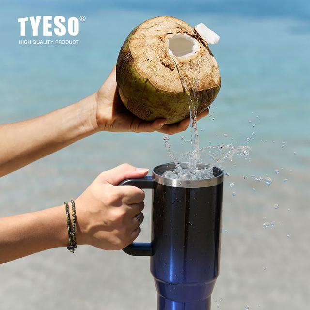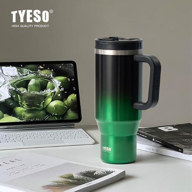 TYESO 泰碩新款漸變色手把冰霸杯1200ml 手柄汽車杯40oz大容量伸縮吸管保溫杯 304不鏽鋼漸變保溫杯 車載杯