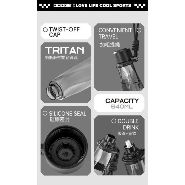 買一送一 道奇旋曲藝術隨身杯640ml 進口tritan材質 附編織提繩 一杯雙飲旋蓋設計防漏戶外休閒運動水壺便攜水杯