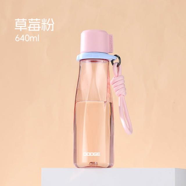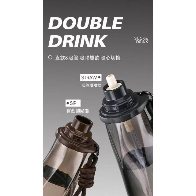 買一送一 道奇旋曲藝術隨身杯640ml 進口tritan材質 附編織提繩 一杯雙飲旋蓋設計防漏戶外休閒運動水壺便攜水杯