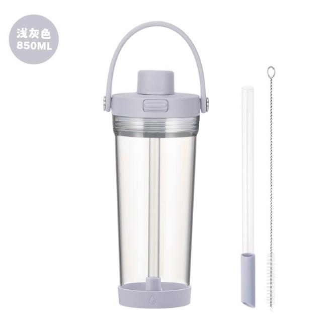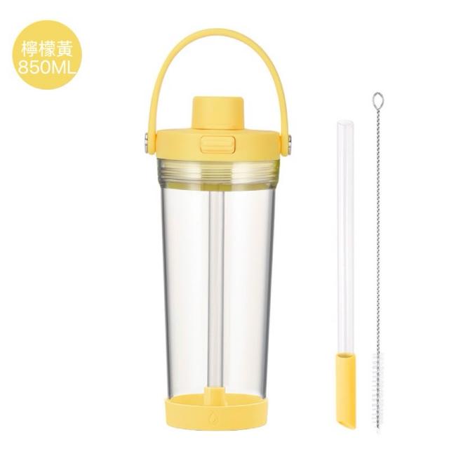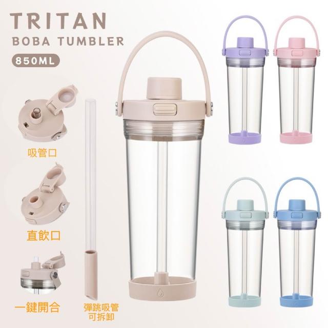 麥果 新款tritan吸管杯850ml 大孔徑可吸珍珠奶茶杯 便攜式一杯雙飲提手彈跳吸管水杯 車載杯辦公休閒塑料杯隨行杯