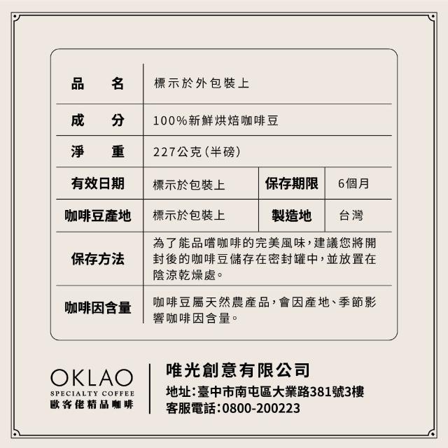 歐客佬印尼迦佑鬼面黃金曼特寧G1 TP中深烘焙咖啡豆(半磅/袋;水洗處理法)
