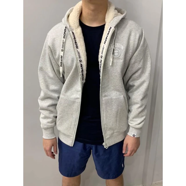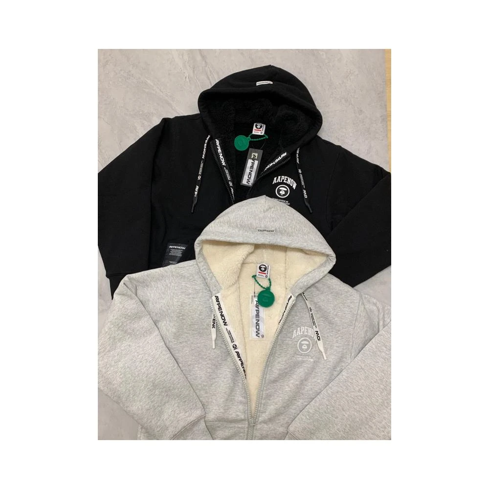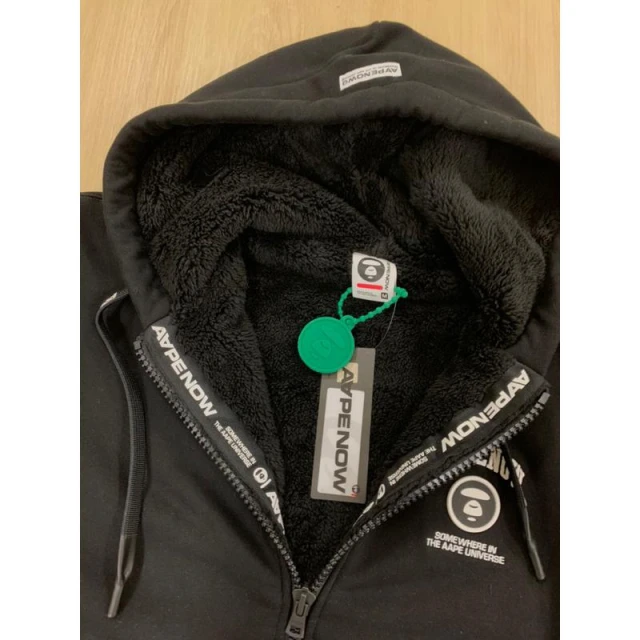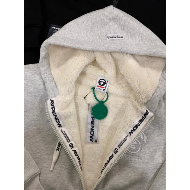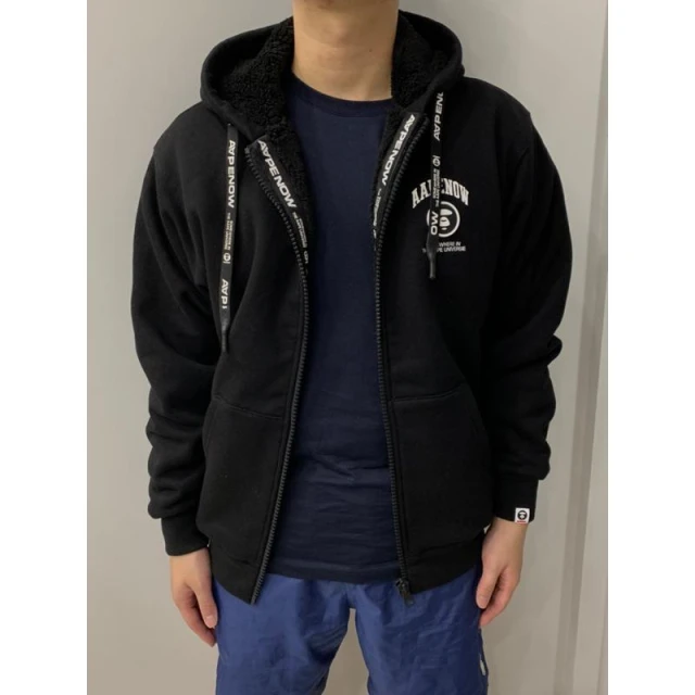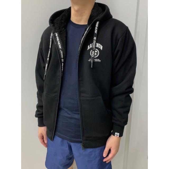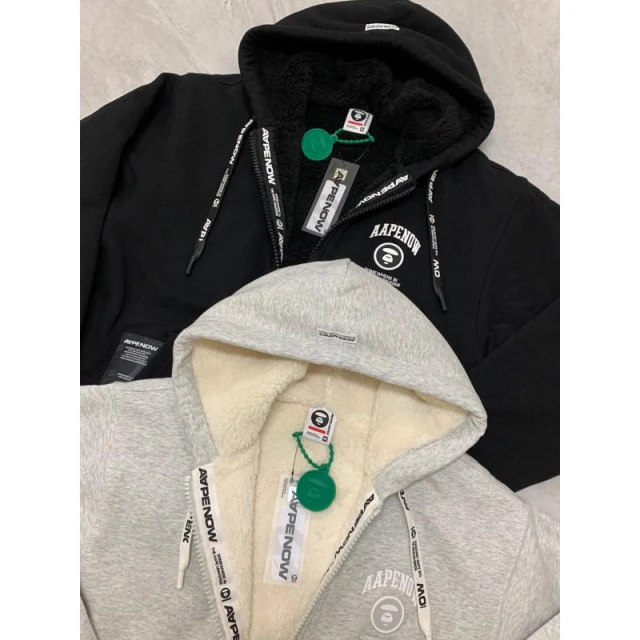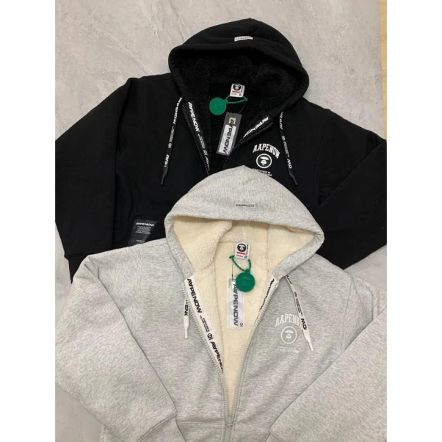 Aape 經典 小logo設計 羊羔毛 內刷毛 超厚磅 黑色 灰色 連帽外套