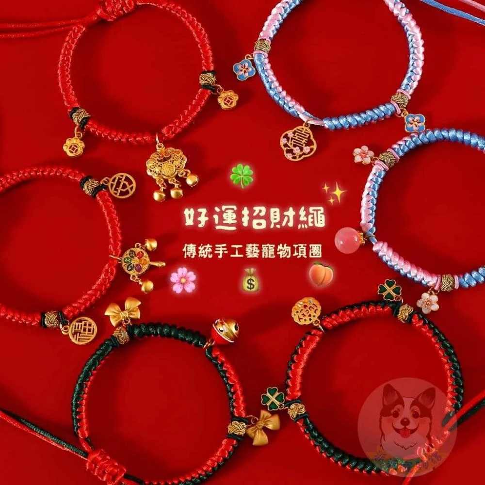 幸運招財繩 寵物項圈 狗狗項圈 貓咪項圈 狗項圈 貓項圈 狗狗 貓咪項鍊配件小中大型犬幼貓幼犬項圈頸圈鈴鐺飾品手鍊