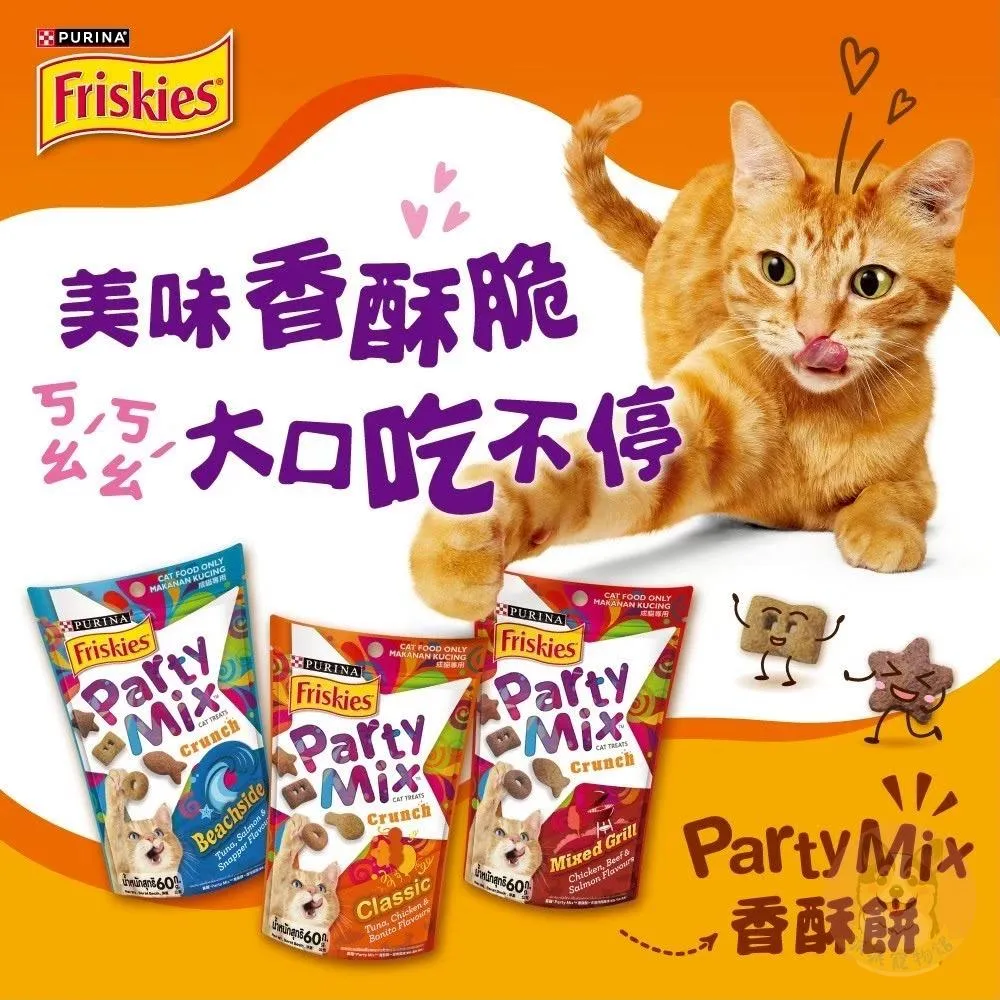 Friskies 喜躍Party Mix喜躍香酥餅🎉 Friskies喜躍 貓咪餅乾 貓餅乾 餅乾零食 貓零食 貓點心 貓脆餅 貓咪零食寵物