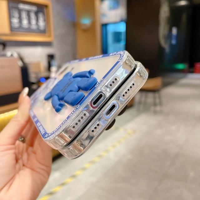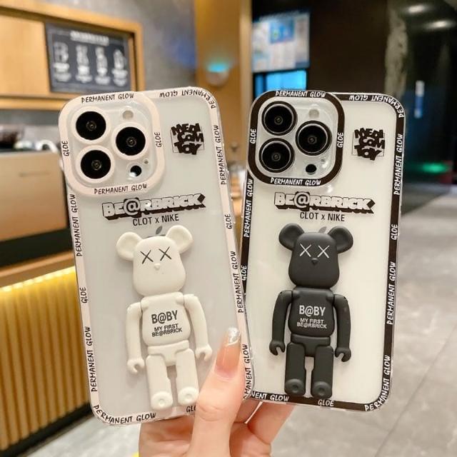 雅新** 雙手支架 潮牌 暴力熊 蘋果手機殼 iPhone 15 14 13 12 Pro Max XR XS 1K04
