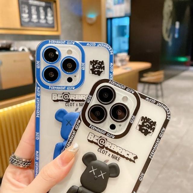 雅新** 雙手支架 潮牌 暴力熊 蘋果手機殼 iPhone 15 14 13 12 Pro Max XR XS 1K04