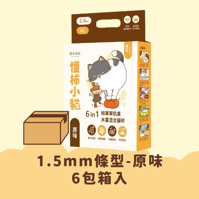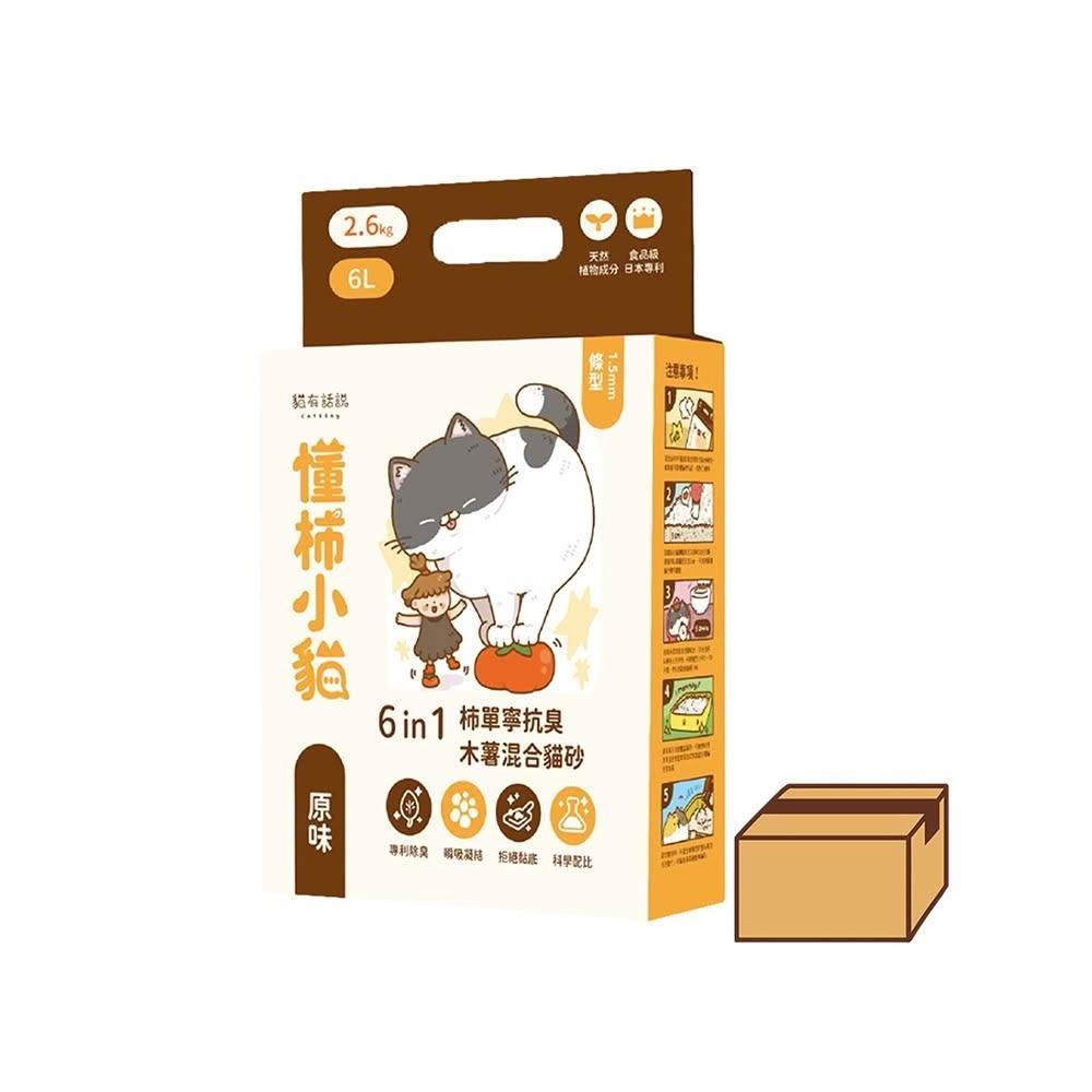 catssay 貓有話說貓有話說|懂柿小貓 6in1 柿單寧抗臭木薯混合貓砂 1.5mm條型 原味2.6kg|6包組
