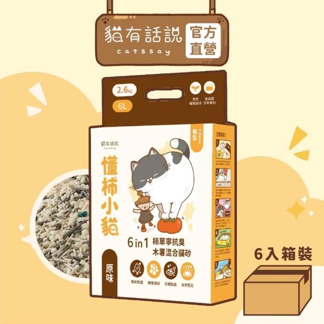 catssay 貓有話說貓有話說|懂柿小貓 6in1 柿單寧抗臭木薯混合貓砂 1.5mm條型 原味2.6kg|6包組