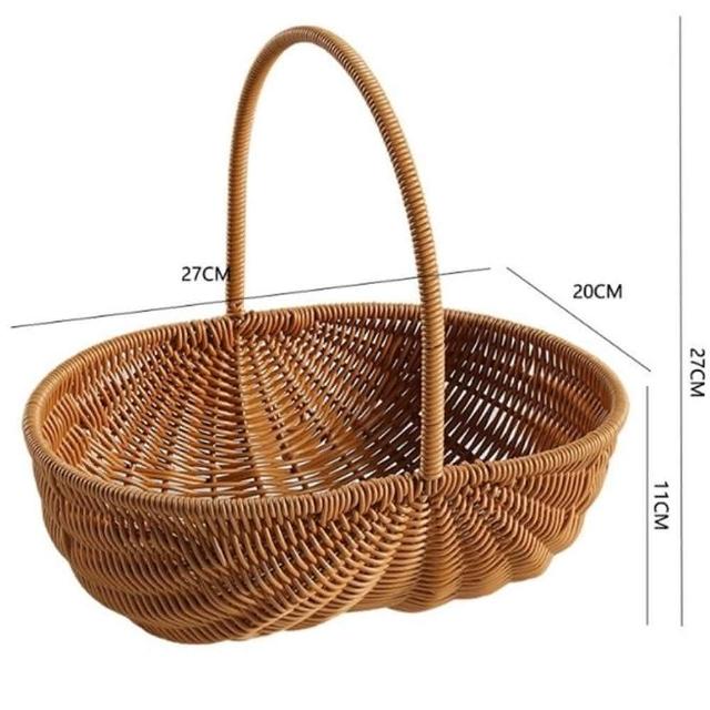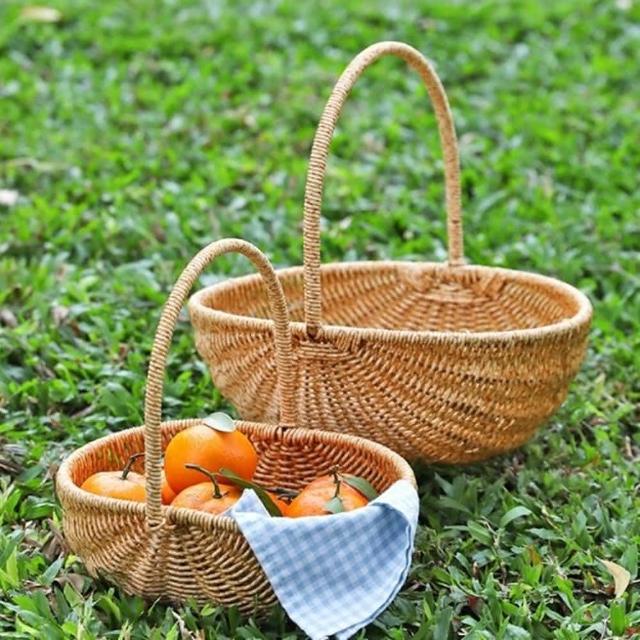 仿藤編手提水果籃花籃野餐籃中款2色可選