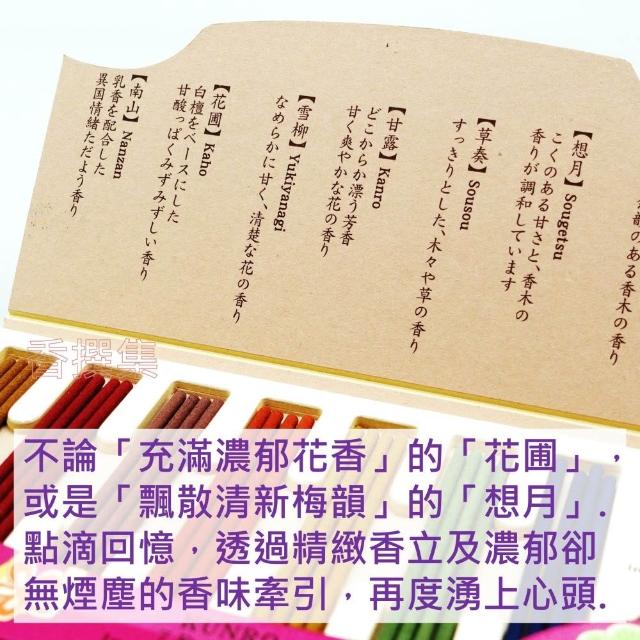 線香 薰香 香氛 薰路 松榮堂 日本線香 七合一 七種入 試用 組合 超值 花圃 雪柳 草奏 想月 宵詩 禮盒 香撰集