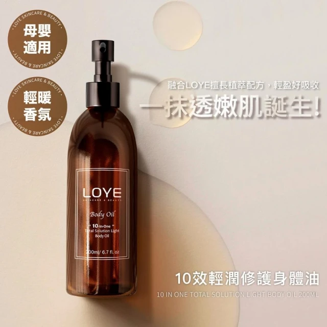 LOYE 樂妍10效輕潤修護身體油200ml | 一瓶到位的美體精華油 / 快速滲透不留油感 / 無雌激素,孕嬰、敏感肌安心適用