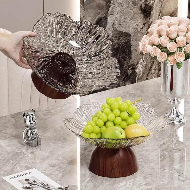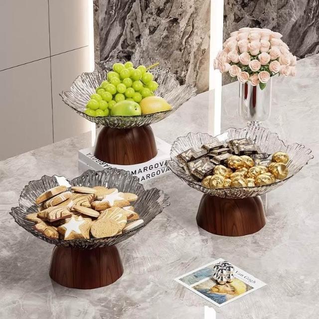 茂源優選仿木高腳盤復古精緻高顏值水果盤網紅家用客廳點心零食糖果盤高檔