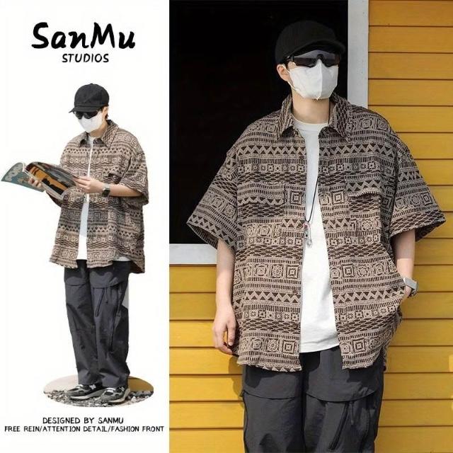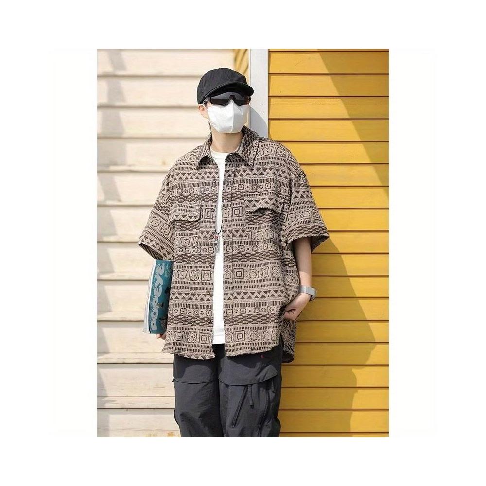 茂源優選日系復古短袖襯衫男女夏季bf風民族風休閒小衆情侶學生慵懶花襯衣