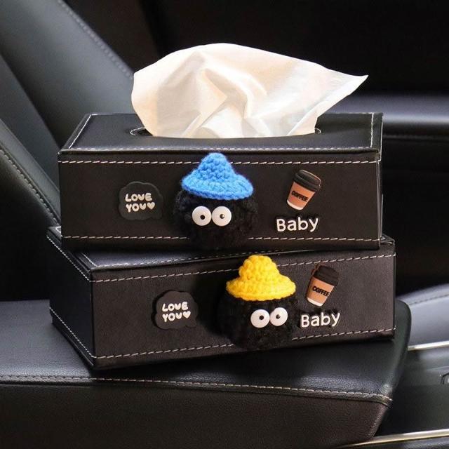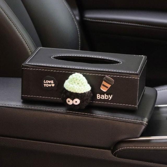 茂源優選車載紙巾盒車內煤球裝飾中控臺車用座式皮革抽紙盒扶手箱汽車收納