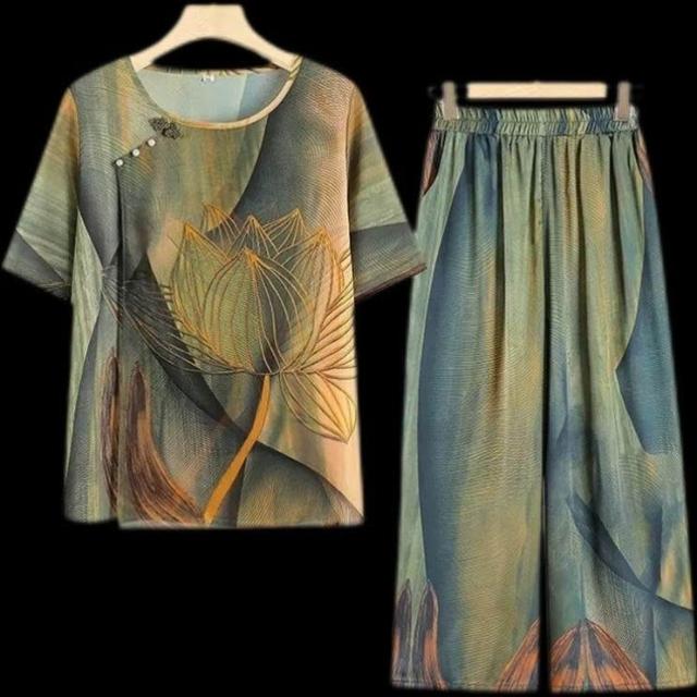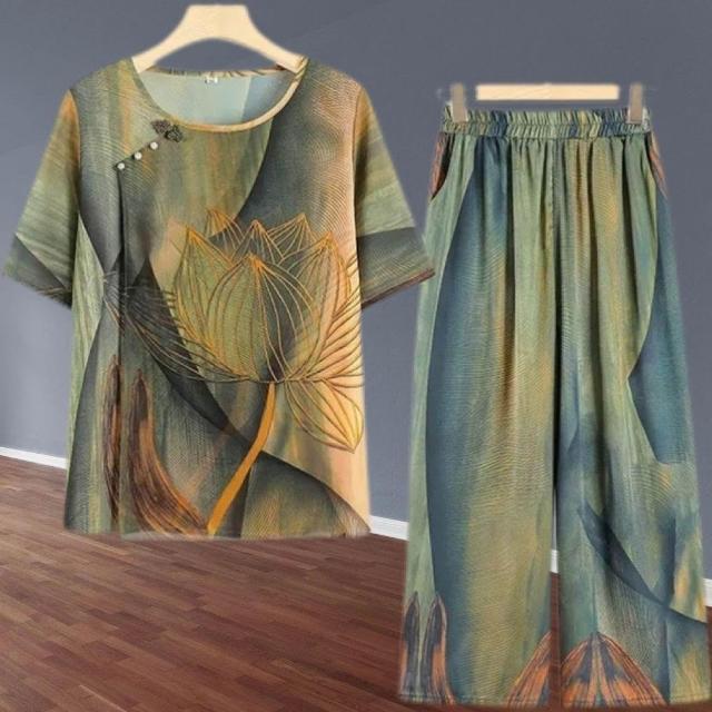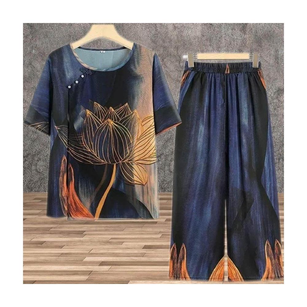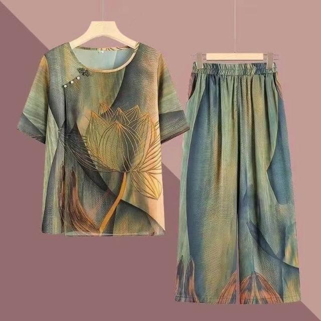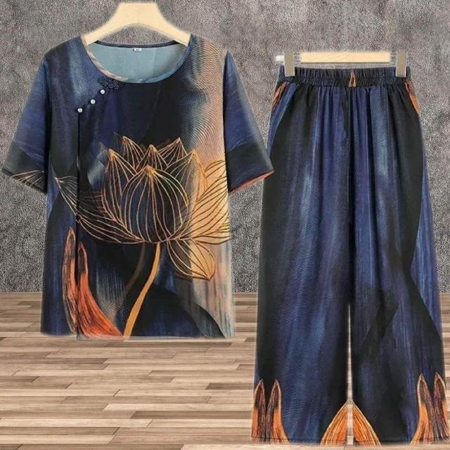 茂源優選冰絲闊腿褲寬鬆休閒遮胯遮肚子巨顯瘦兩件套新中式中老年媽媽夏裝