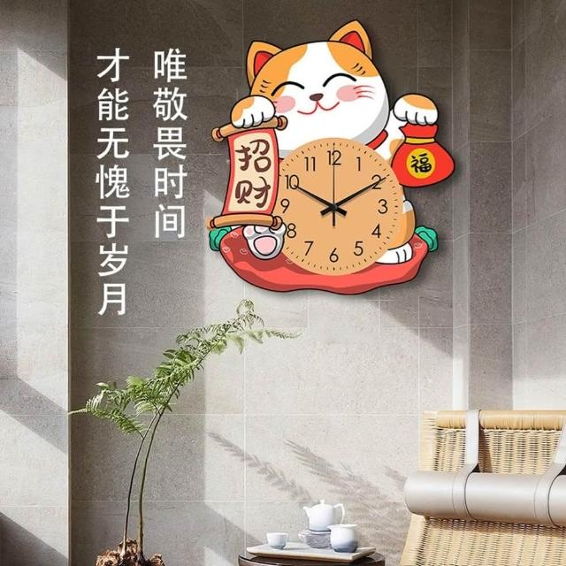 小慕Kogure 掛鐘 招財貓鐘表掛鐘 壁掛鐘 時鐘裝飾畫靜音掛表