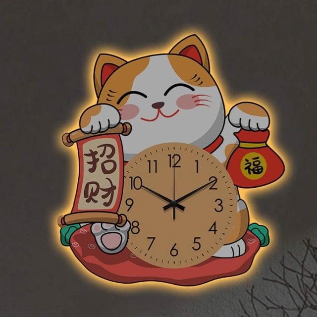 小慕Kogure 掛鐘 招財貓鐘表掛鐘 壁掛鐘 時鐘裝飾畫靜音掛表