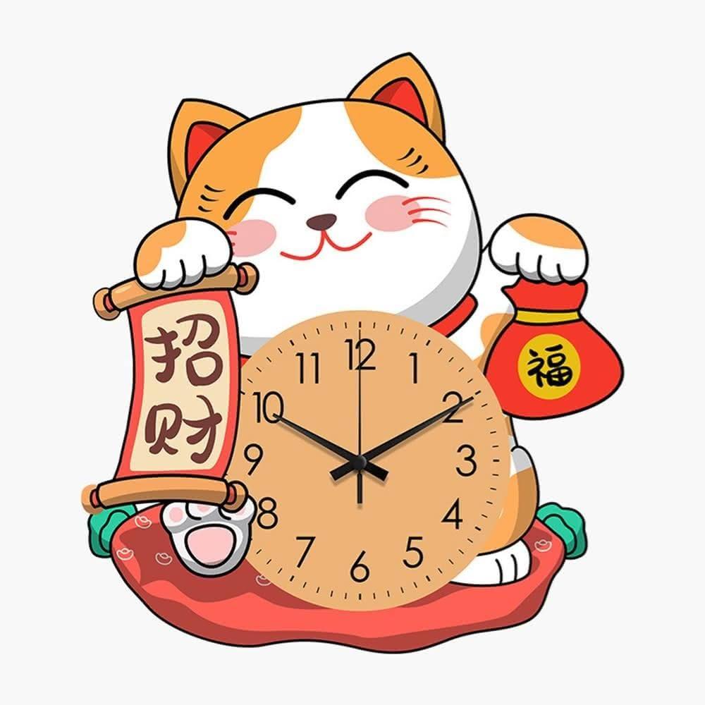 小慕Kogure 掛鐘 招財貓鐘表掛鐘 壁掛鐘 時鐘裝飾畫靜音掛表