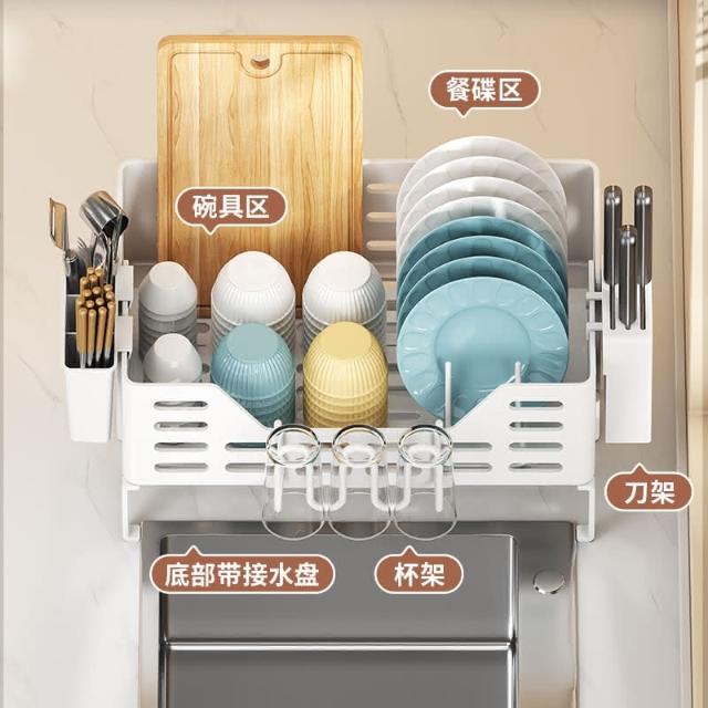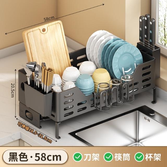 小慕Kogure 伸縮碗碟架 新款水槽瀝水收納架 輕奢廚房置物架 台面碗碟杯架 廚房用品