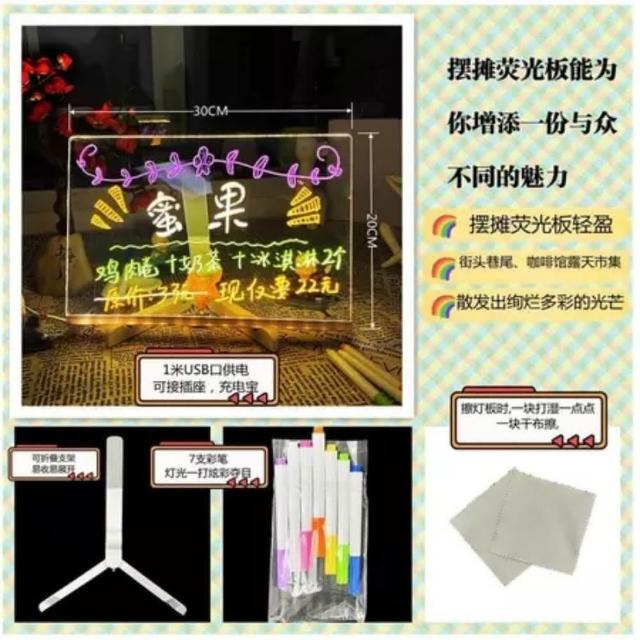 小慕Kogure 透明熒光板 可擦寫白板 電子屏發光寫字板 桌面LED小看板 畫板擺件 擺攤夜市小黑板 店鋪宣傳廣告牌