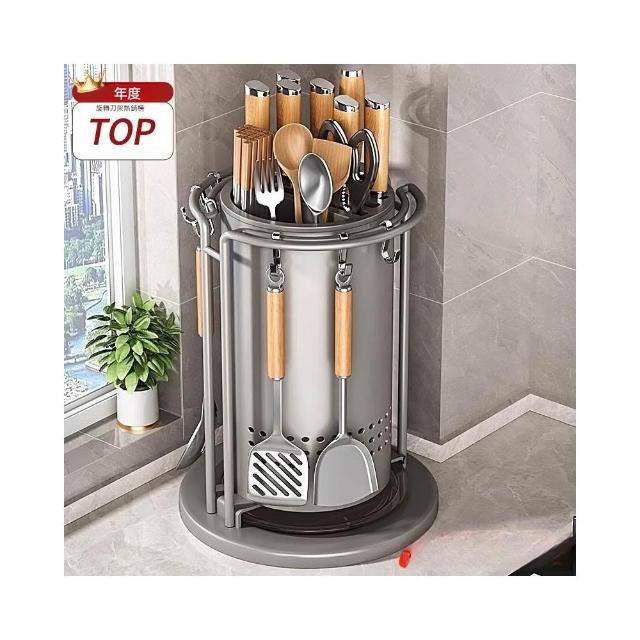 小慕Kogure 廚房旋轉刀架 置物架 鍋鏟勺筷子筒菜刀架一體收納盒 多功能家用神器