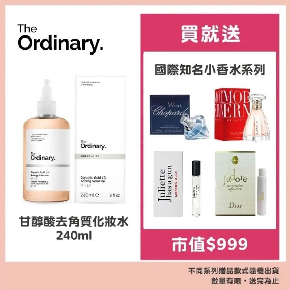 The Ordinary甘醇酸去角質化妝水 240ml效期2026.06加碼贈國際知名小香