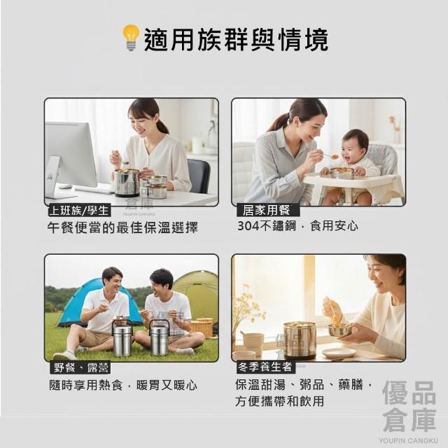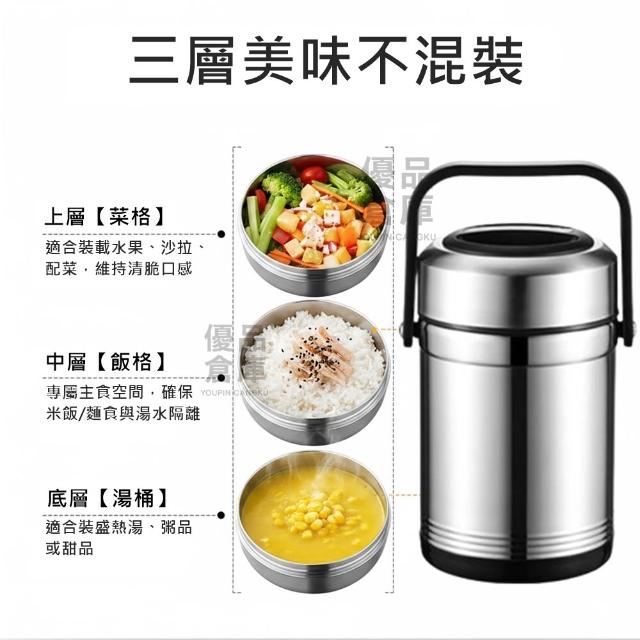 🏆優品倉庫🏆 304不鏽鋼 三層保溫提鍋 1.6L大容量 ( 保溫飯盒/便當盒/保溫桶飯盒/提鍋 )