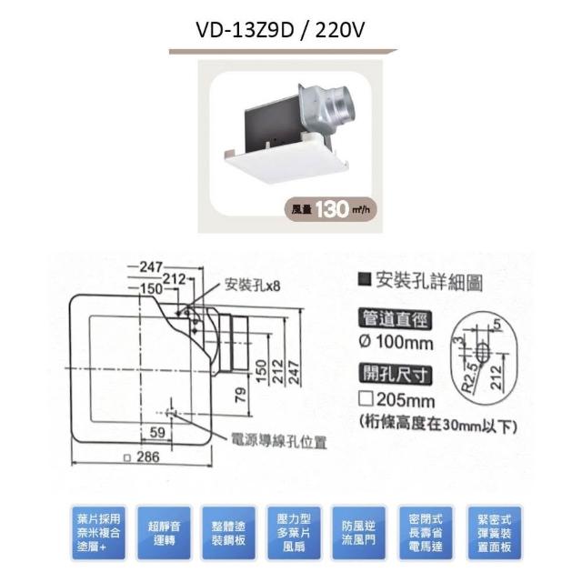 MITSUBISHI 三菱電機超靜音換氣扇 抽風扇 浴室排風扇《VD-13Z9D》220V ※無安裝服務