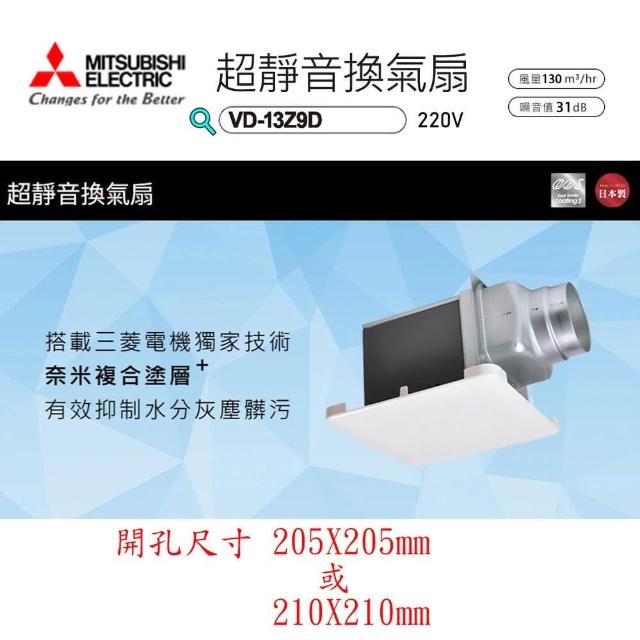 MITSUBISHI 三菱電機超靜音換氣扇 抽風扇 浴室排風扇《VD-13Z9D》220V ※無安裝服務